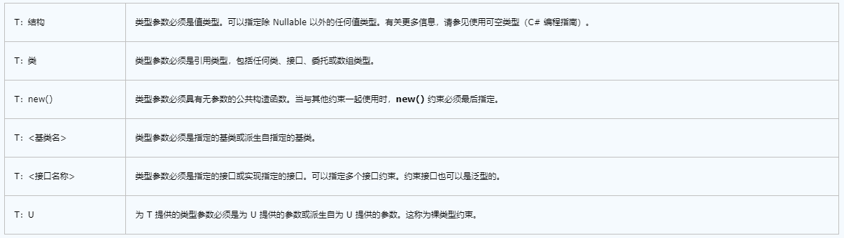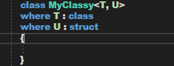 4.對于多個類型參數,每個類型參數都使用一個 where 子句。