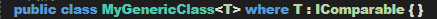 例如,可以聲明一個泛型類 MyGenericClass,這樣,類型參數 T 就可以實現 IComparable<T> 接口: