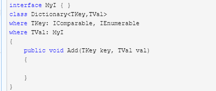 where T : interface_name 類型必須實現指定的接口